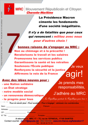Nous mettons à votre disposition notre tract actualisé "Avec le MRC 17, prendre ses responsabilités".