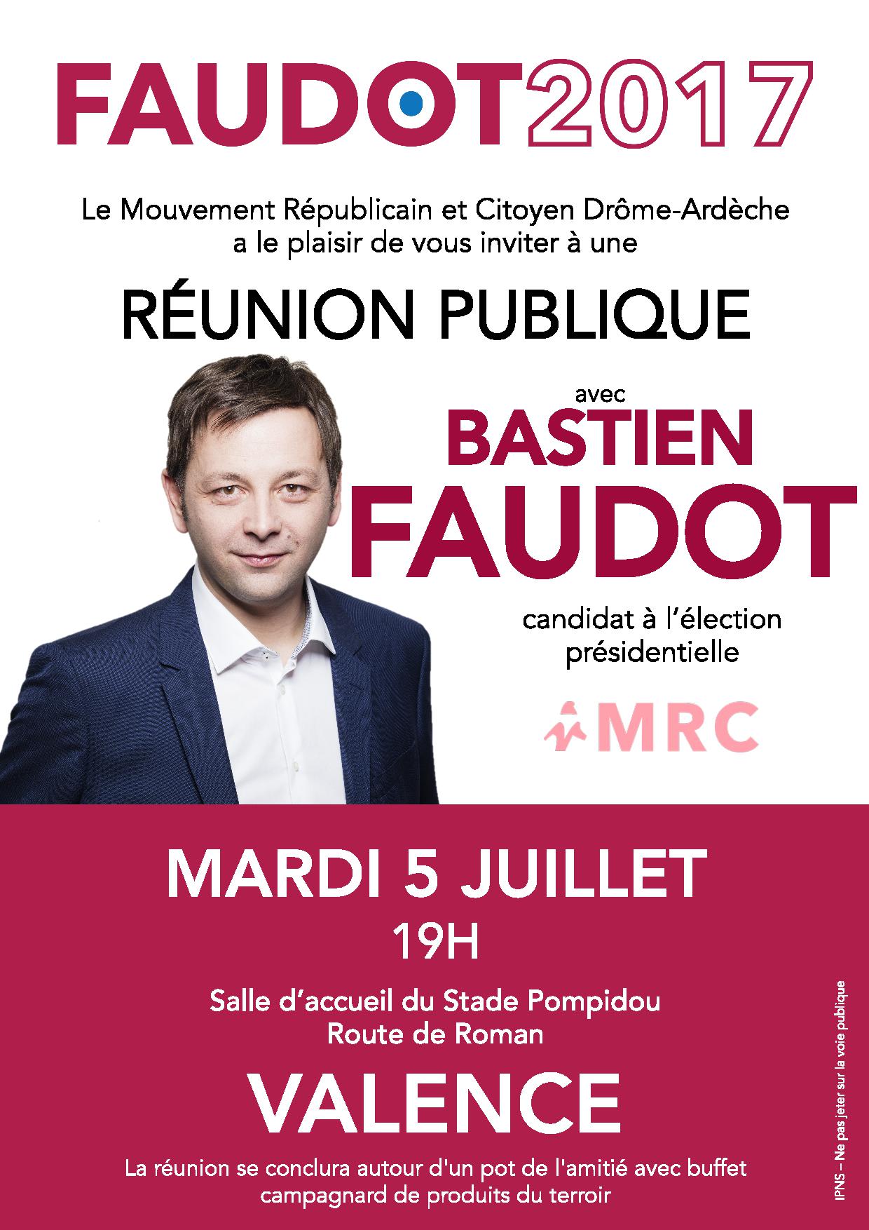 Venez nombreux faire connaissance avec Bastien Faudot. Venez nombreux l'écouter, venez échanger avec un candidat à la présidence de la République capable d'apporter des réponses aux grandes questions de notre temps, ensemble nous devons inventer, changer d'angle, être capables de dessiner la France que nous voulons, dans un monde qui vient.